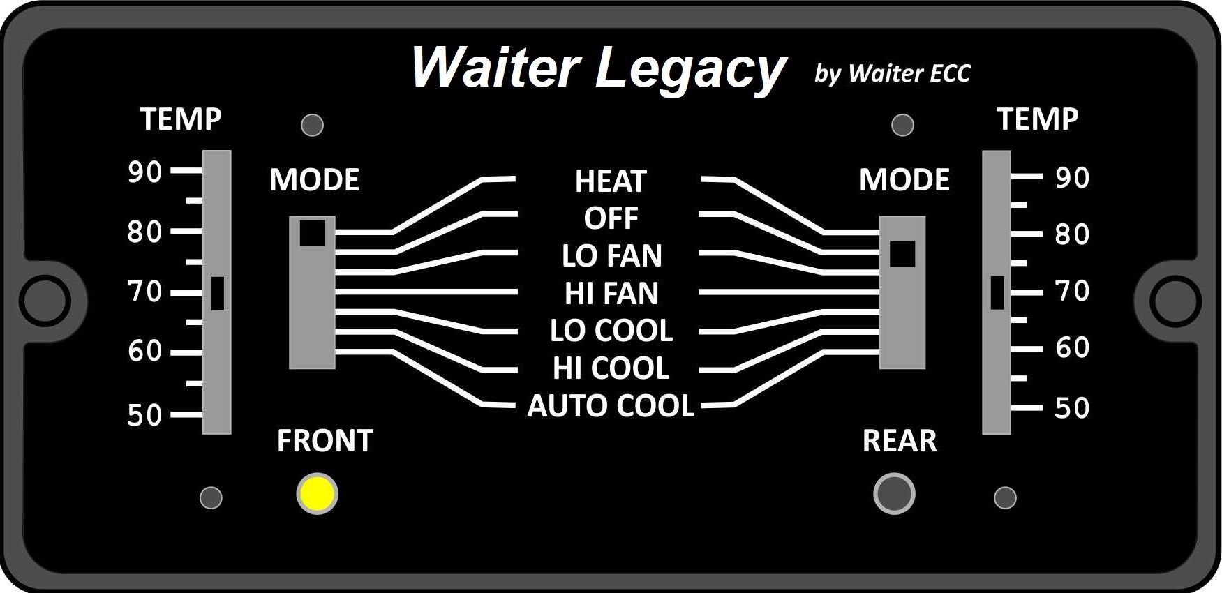 Waiter Legacy – (BUY NOW) – This is our most economical replacement. The operators panel is similar to the original Intellitec panel. Temperature set points and mode controls use dedicated slide switches. Additional features include faulty sensor indication, more robust status LED indications, etc. (See OPERATION)